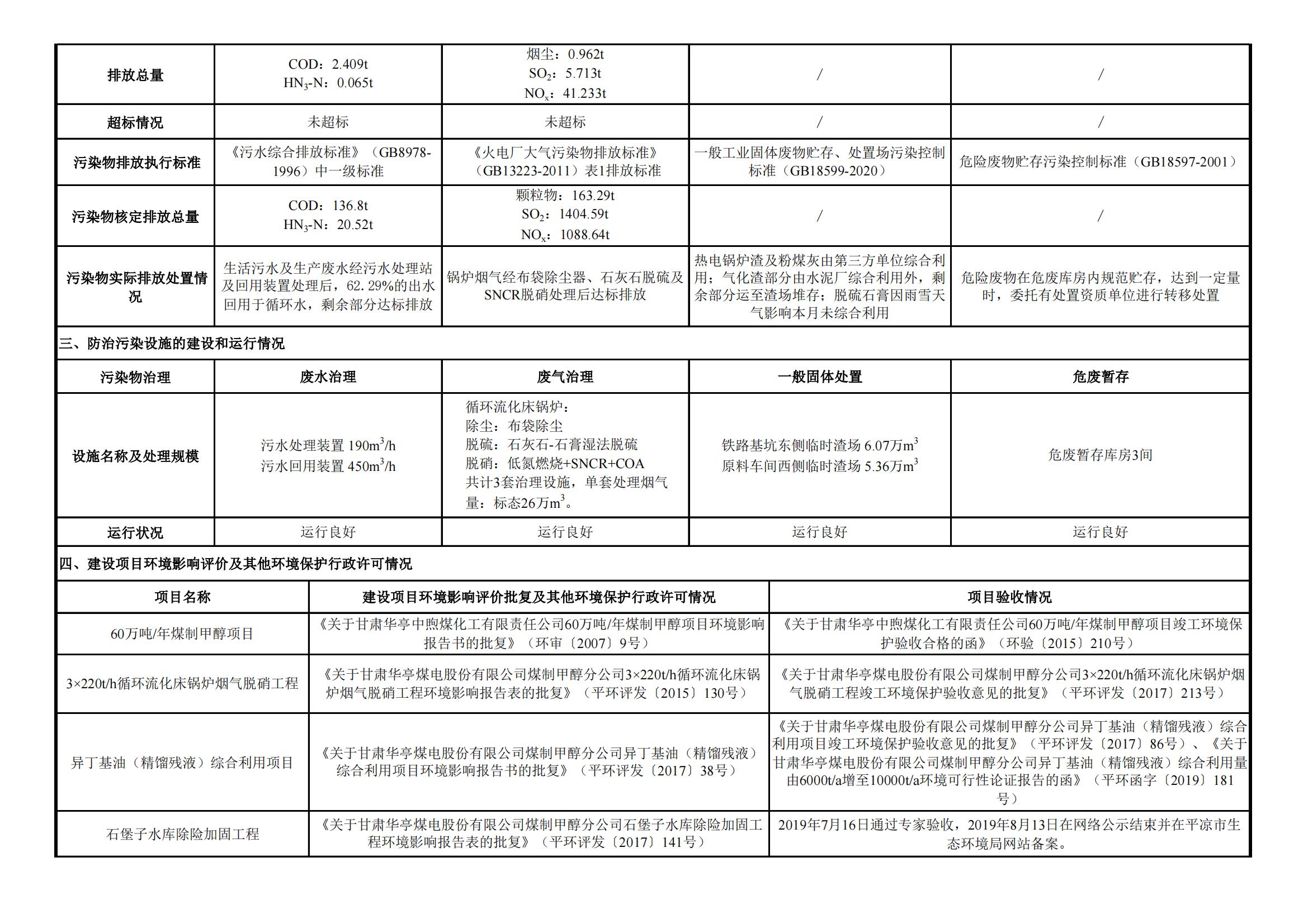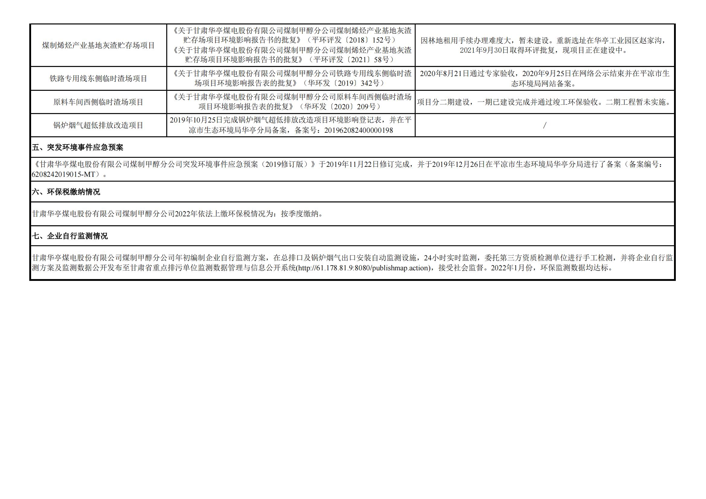 煤制甲醇分公司環(huán)境信息公開內(nèi)容(2022年1月)