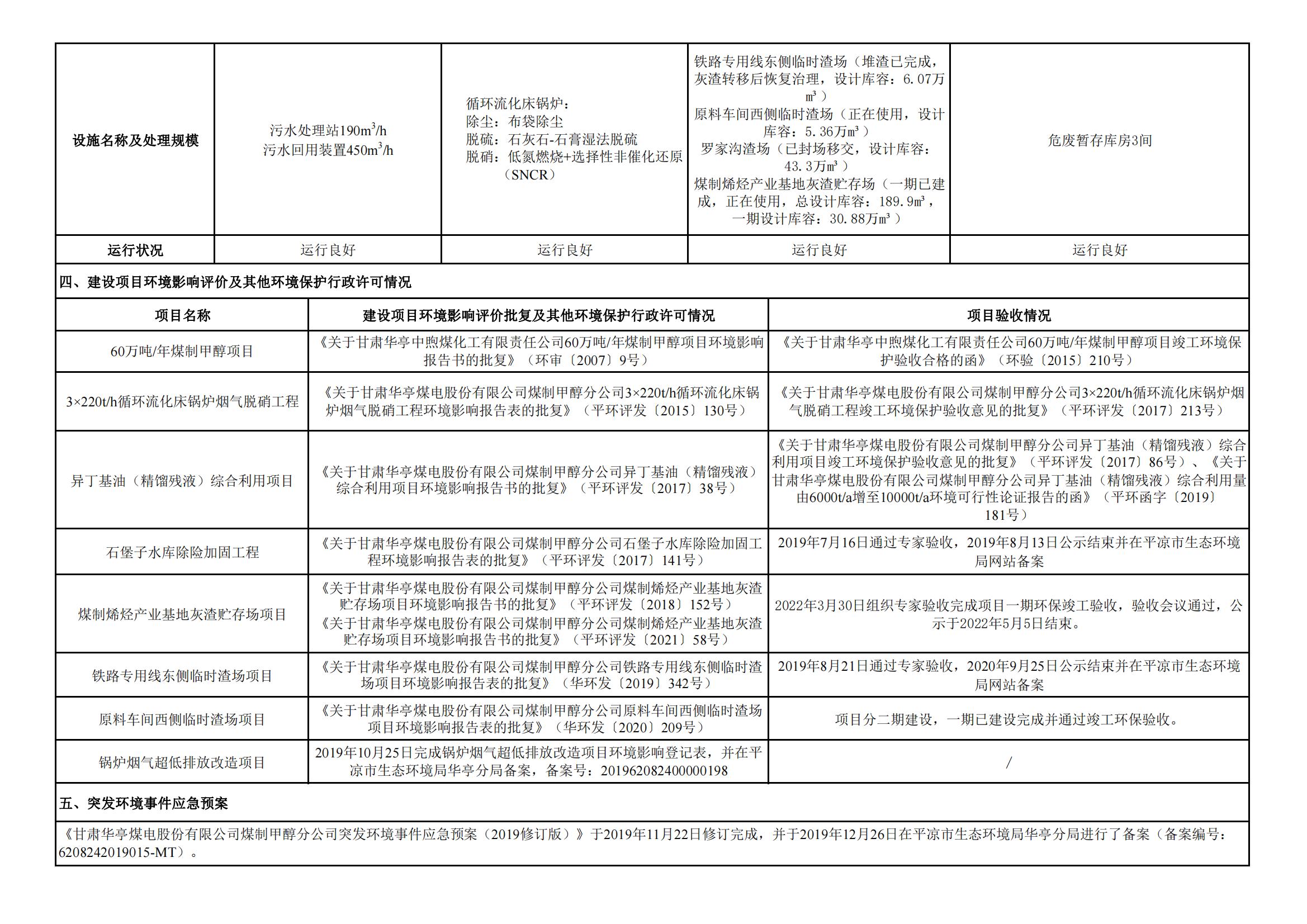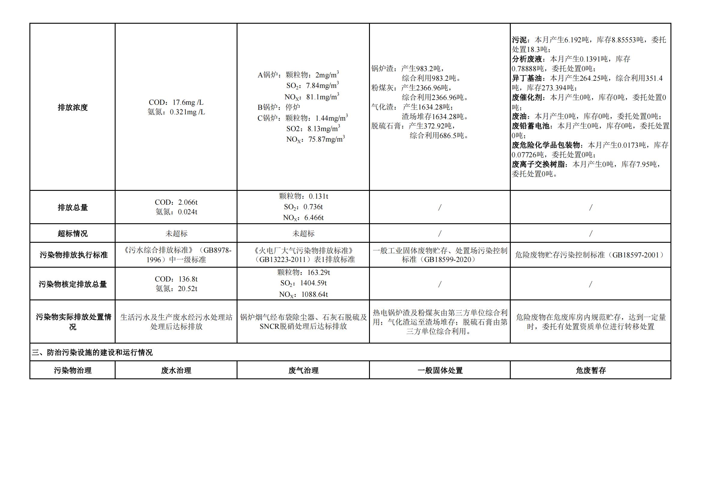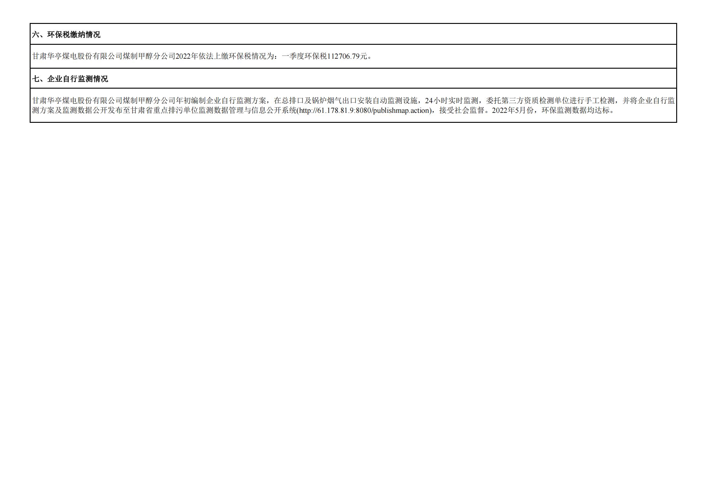 煤制甲醇分公司環(huán)境信息公開內容(2022年5月)