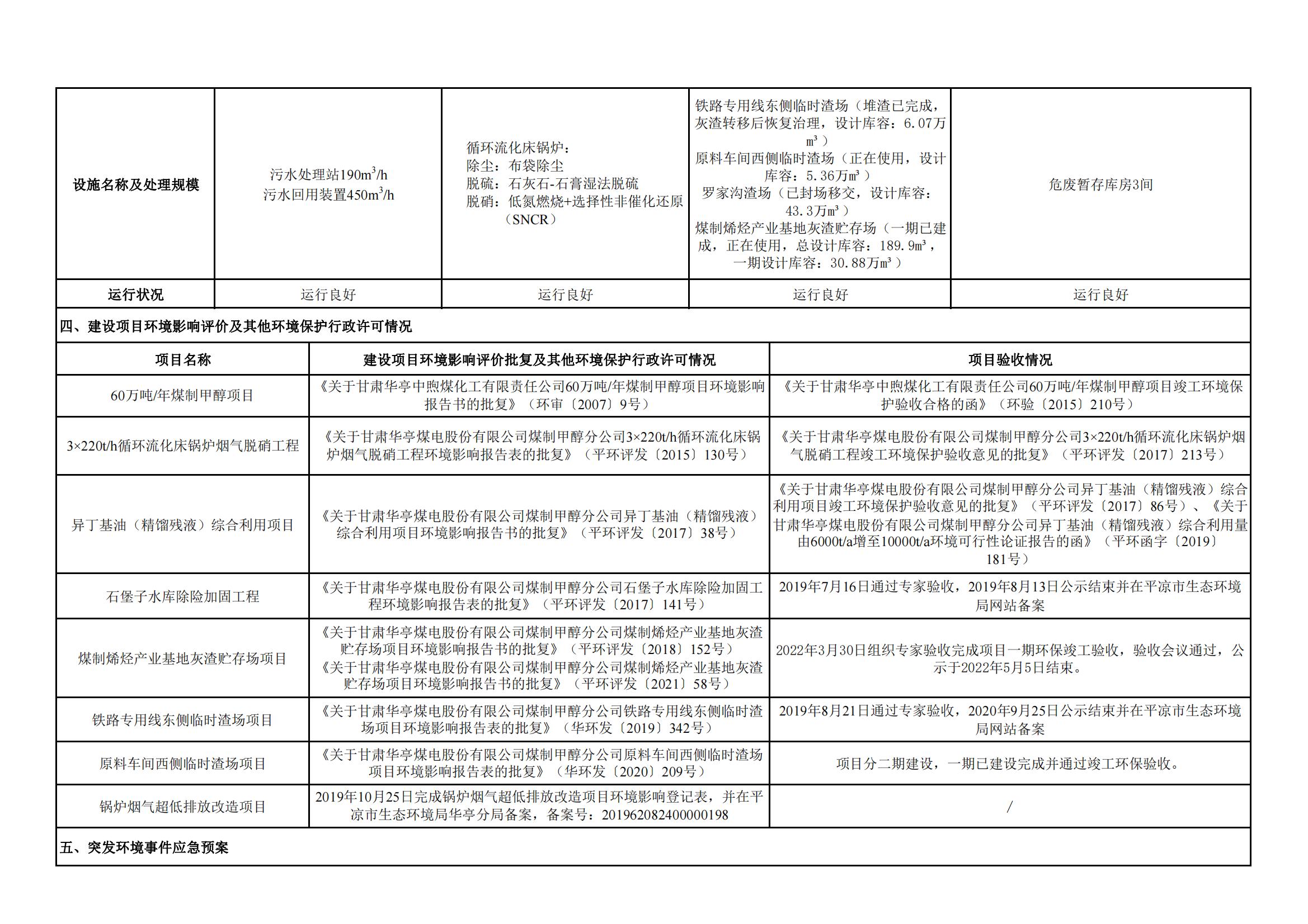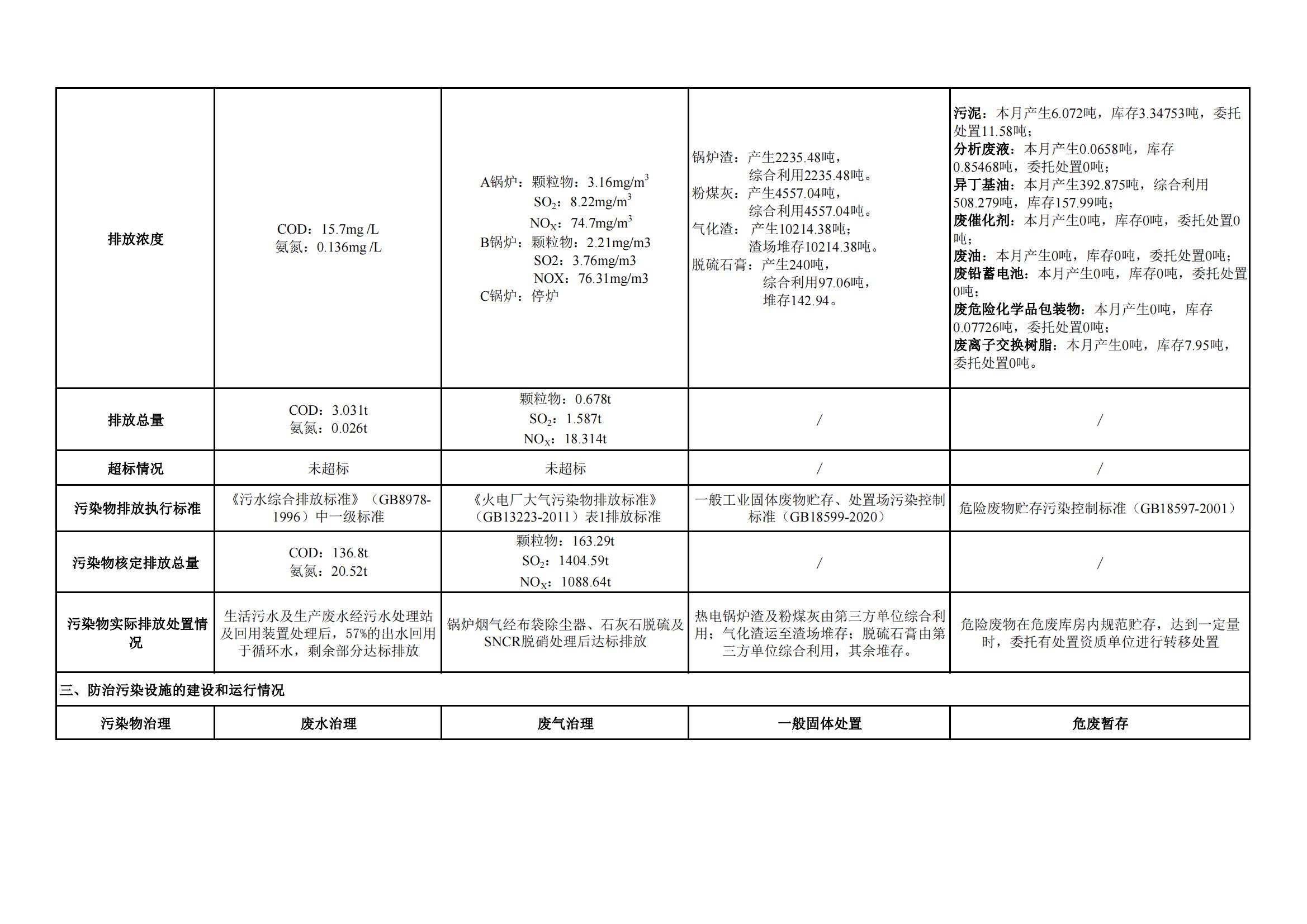 煤制甲醇分公司環(huán)境信息公開內(nèi)容(2022年6月)